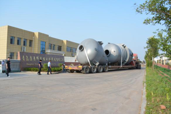 6月26日,青島康景輝節(jié)能環(huán)保科技有限公司設(shè)計(jì)、生產(chǎn)、制造的三效鈦材蒸發(fā)器裝貨完畢,如期發(fā)往青島某化工(集團(tuán))有限公司。